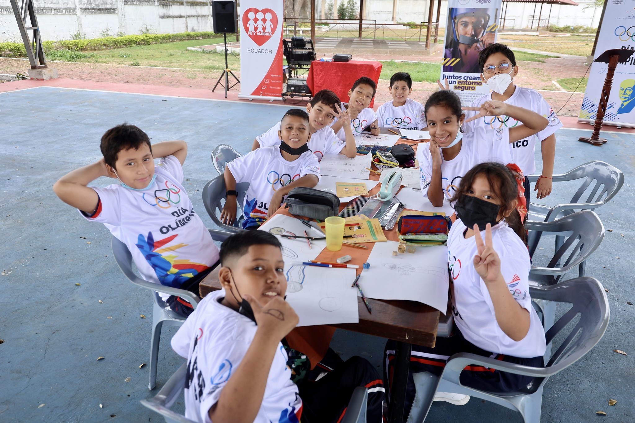 “Este taller lo venimos realizando desde hace cuatro años con todas las escuelas que pertenecen a Fe y Alegría. El día de hoy tenemos a 50 participantes que están plasmando los valores con que estamos trabajando, que son respeto, amistad y excelencia”, explicó Janett Aveiga, coordinadora de la Academia Olímpica Ecuatoriana.