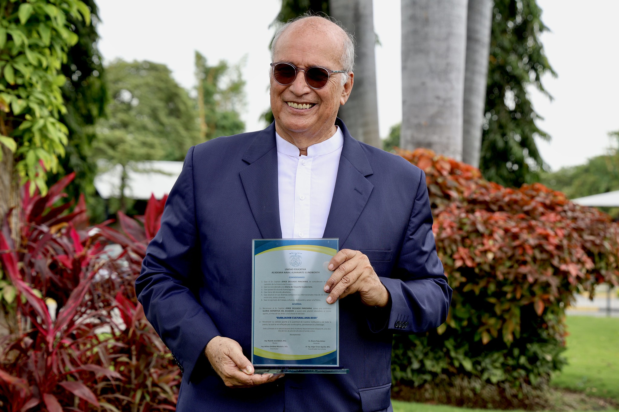 La Academia Naval Almirante Illingworth rindió homenaje al mejor nadador de todos los tiempos Jorge Delgado Panchana. Con una placa reconoció al presidente del Comité Olímpico Ecuatoriano, Gloria Deportiva del Ecuador, y lo declaró Embajador Cultural del ANAI 2025.